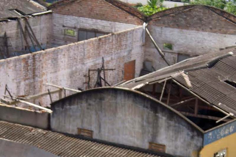 Parte do talhado da estrutura já desmoronou. E ainda há risco do restante cair. “É preciso uma limpeza. Não podemos viver com este perigo”, exclama Maria das Graças. Um dos pavilhões fica na esquina com a Rua Olívio Pavei, onde há o condomínio Torres de Miró e, atualmente em construção, as Torres de Monet.