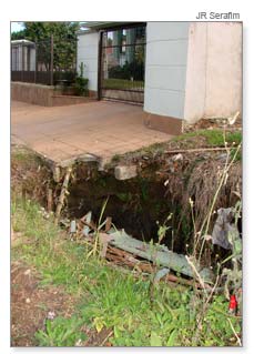 Conforme a moradora Juliana Alves Marcelino, a mudança na tubulação deveria ter sido realizada para a pavimentação com lajotas, ainda não iniciada, mas já paga por algumas pessoas. "Os encanamentos de água estão expostos e, por isso, já tivemos até problemas com o abastecimento", explica. Ainda segundo ela, a cratera está cada vez maior, comprometendo, inclusive, o uso da calçada em frente da residência.