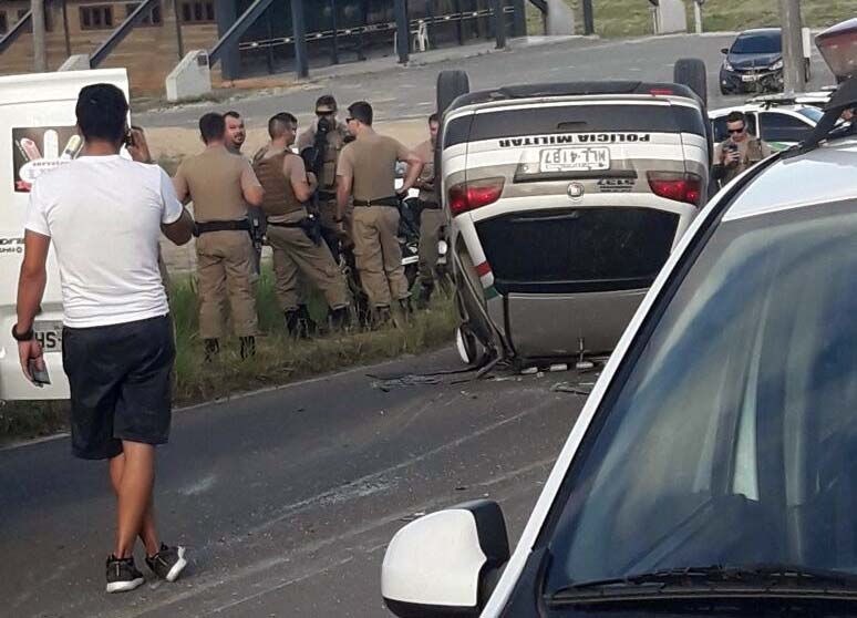 Uma viatura da Polícia Militar de Forquilhinha tombou em Içara durante perseguição no final da tarde desta quarta-feira, dia 31. A capotagem da viatura ocorreu na Rodovia Afonso Moises de Bittencourt (ICR-253), em Vila São José, durante o acompanhamento de um Fiat Stilo prata que havia se evadido de uma abordagem nas proximidades do Aeroporto Diomício Freitas. Os dois policiais que estavam no veículo foram atendidos pelo Corpo de Bombeiros e tiveram encaminhamento ao Hospital São Donato apenas com escoriações. As buscas seguem agora para encontrar o carro utilizado na fuga.