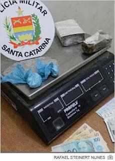 Duas buchas de material semelhante a cocaína, dois tabletes de maconha, R$ 250 em dinheiro, R$ 1,5 mil em cheques, além de uma balança de precisão. Todo o material foi recolhido pela Polícia Militar de Içara na tarde desta quarta-feira, dia 11. A posse foi assumida por WB, de 25 anos. Ele foi abordado no bairro Jaqueline por volta das 14h40 sob a suspeita de tele-entrega de entorpecentes.