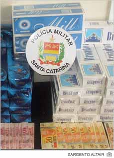 A Polícia Militar de Içara recolheu 64 pacotes de cigarros por volta das 17h desta quarta-feira, dia 29. Conforme o sargento Alexandre Fontoura, o volume contrabandeado estava em um Gol de Forquilhinha na Rua Copacabana, na Lagoa dos Freitas. "Com o homem, CDL, 40 anos, ainda foi encontrado cerca de R$ 700 em cédulas diversas. O cidadão recebeu voz de prisão e, juntamente com o veículo e os cigarros, foi encaminhado à Delegacia", completa.