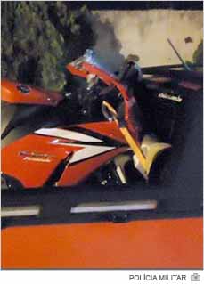 Uma Honda CBR 1000cc avaliada em cerca de R$ 63 mil foi recuperada pela Polícia Militar de Içara na noite desta segunda-feira, dia 12. O equipamento foi achado com um homem que já tem antecedentes criminais por furto. Ele foi detido e encaminhado para a Delegacia junto com a Courrier que utilizava para transportar a moto furtada de uma revenda da marca em Criciúma.