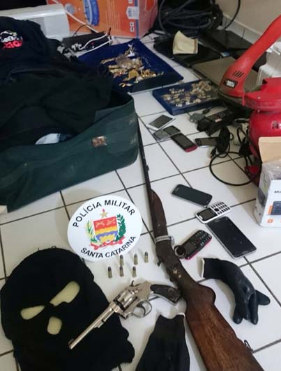 Dois televisores, quatro notebooks, um lava jato, equipamentos eletrônicos, joias, um revólver calibre 38 escondido no forro com seis munições e uma espingarda calibre 36 com mais 10 munições já deflagradas foram apreendidos pela Polícia Militar no Balneário Rincão na madrugada desta quinta-feira, dia 15. A suspeita é que parte dos objetos recolhidos seja do assalto a uma família de Ponta do Mato na última terça-feira, dia 13.