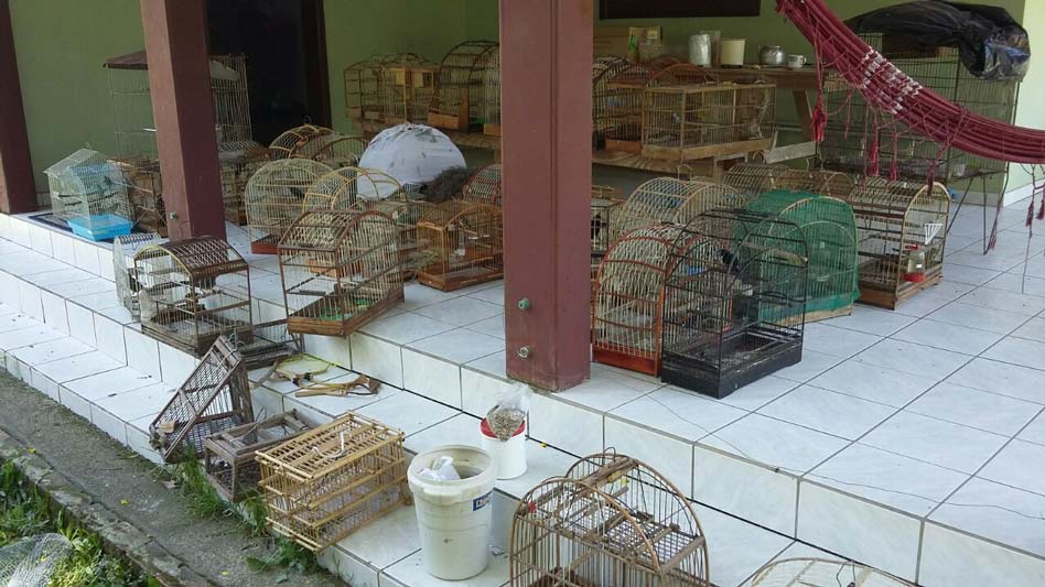 Cinquenta e seis aves silvestres foram apreendidas pela Polícia Ambiental em um sítio na comunidade de Santa Cruz por volta das 11h desta segunda-feira, dia 31. O morador não chegou a ser detido, pois fugiu do local ao perceber a proximidade das viaturas, mas deixou todo o local aberto. Os animais ficavam em gaiolas e viveiros espalhados entre as árvores e dentro da residência. Ao todo foram encontradas 17 espécies através da denúncia ao Ibama.