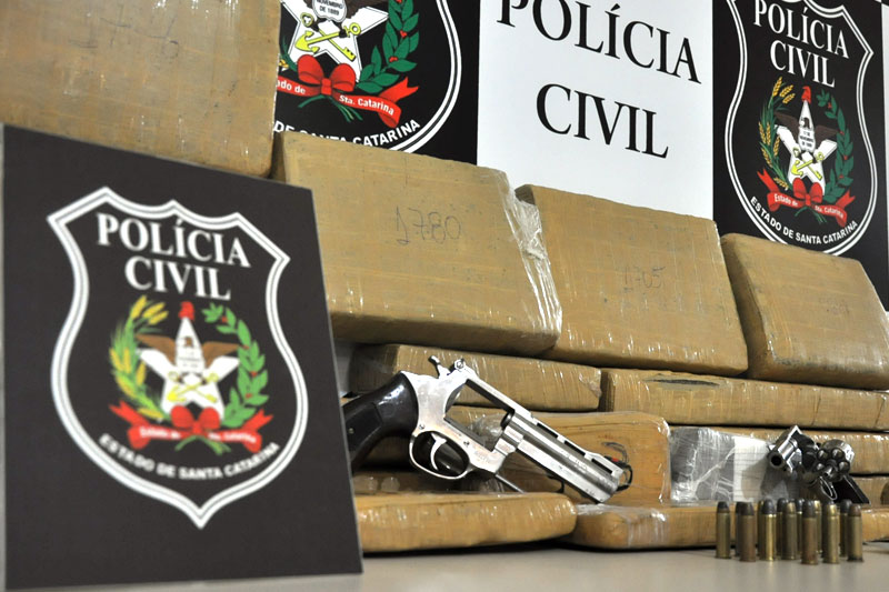 A Polícia Civil de Içara apreendeu cerca de 25kg de maconha divididos em 18 embalagens nesta noite. O material estava num Gol de Piçarras em trânsito pela Linha Zilli por volta das 22h de quinta-feira, dia 24. A operação noturna resultou também no recolhimento de dois revólveres de calibre 38 com 15 munições numa casa guarnecida por câmera no bairro Liri. O equipamento foi encontrado num compartilhamento da residência de RV, de 27 anos. Conforme o delegado Rafael Marin Iasco, trata-se de um dos maiores fornecedores de maconha da região.