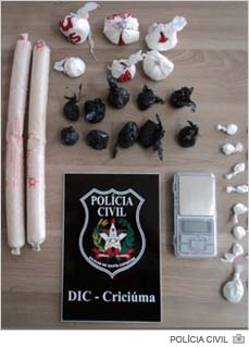 Policiais civis de Criciúma, Jaguaruna, Içara, Rincão, Siderópolis, Treviso, Lauro Müller e Orleans foram mobilizados contra o tráfico de drogas na manhã desta quarta-feira, dia 27. Conforme o delegado André Milanese, a operação coordenada pelo Departamento de Investigação Criminal teve a participação de 35 pessoas no bairro Imperatriz, em Criciúma. Ao todo foram cumpridos sete mandados de busca e apreensão, além de realizadas duas prisões. Com AE, de 24 anos, foi encontradas 16 porções de substância semelhante a cocaína e seis bananas de dinamite. Já com MRBG, de 25, estavam mais 16 porções de material também semelhante a cocaína.