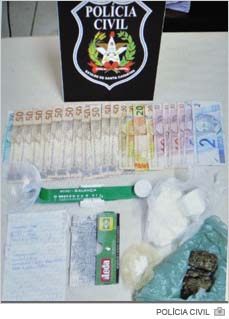 Na propriedade dele estavam 300g de cocaína. O montante corresponde a quase R$ 9 mil de entorpecente. Além disso, havia cerca de 80g de maconha, R$ 807 em dinheiro, anotações sobre a comercialização e uma balança manual. "Quando a polícia chegou o suspeito estava dormindo. A droga foi achada no guarda-roupas. A maconha era de uso pessoal. Já a cocaína era revendida na comunidade", relata a autoridade policial.