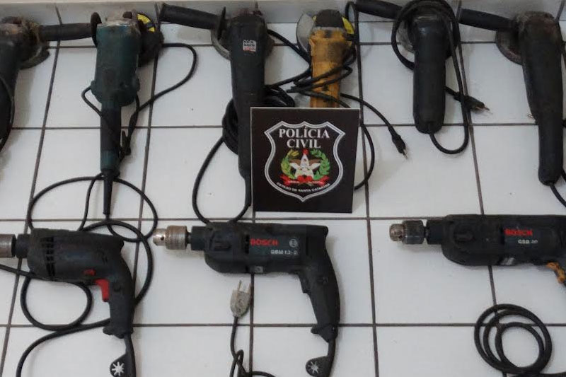 O Setor de Investigação da Polícia Civil de Içara apreendeu 10 esmerilhadeiras e cinco furadeiras na manhã desta sexta-feira, dia 13. Os equipamentos furtados estavam no Loteamento Antônio Lima, onde foram detidas por receptação três pessoas. Duas delas do Rio Grande do Sul e uma da própria cidade. Além dos materiais, foram recolhidos também dois veículos que estavam no local.