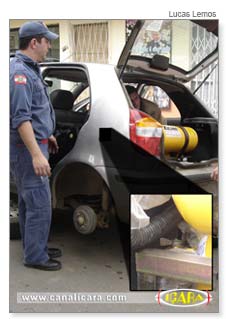 Por precaução, o trânsito na área foi isolado. O vazamento foi identificado no cano de alta pressão que leva o gás para o motor. Conforme os bombeiros que faziam o atendimento, uma das válvulas não estava fechando. O conversor Renato Siqueira Anselmo foi chamado para verificar a situação. Segundo ele, a situação não apresentava perigo, pois o gás natural é mais leve que o ar. “Mesmo com o vazamento no cano de alta, é difícil que o gás pegue fogo, pois dentro da válvula principal, há um sistema de segurança que diminui a vazão do material”, explica Anselmo. “Os bombeiros não conseguiram fechar a válvula pois a pressão do gás é muito forte”, completa. De acordo com o proprietário, que não quis se identificar, o kit gás foi instalado a menos de cinco meses.