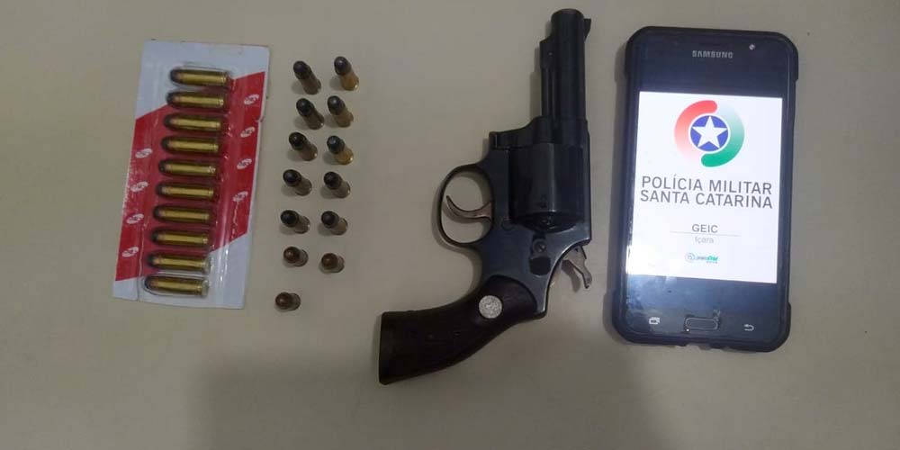 Um revólver calibre 32 e 23 munições foram apreendidas pela Polícia Militar de Içara nesta segunda-feira, dia 8. A ação iniciou no bairro Aurora com uma abordagem de trânsito. Em revista ao veículo e ao motorista, nada de ilícito foi encontrado. Mas devido ao nervosismo demonstrado, os policiais se deslocaram também até a residência do condutor, onde estavam os materiais.