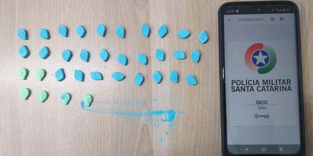 Trinta e quatro comprimidos de ecstasy foram apreendidos em Içara na madrugada desta sexta-feira, dia 12. O material foi encontrado no banco traseiro de um veículo abordado no centro da cidade por volta da 0h20 após uma tentativa de fuga de marcha ré devido a aproximação da viatura da Polícia Militar. No carro estavam dois garotos e uma garota, ambos adolescentes, por isso, encaminhados para acompanhamento do Conselho Tutelar. Outros dois homens estavam junto, já possuíam passagens por tráfico, homicídio entre outros crimes, e tiveram a condução também para a delegacia.