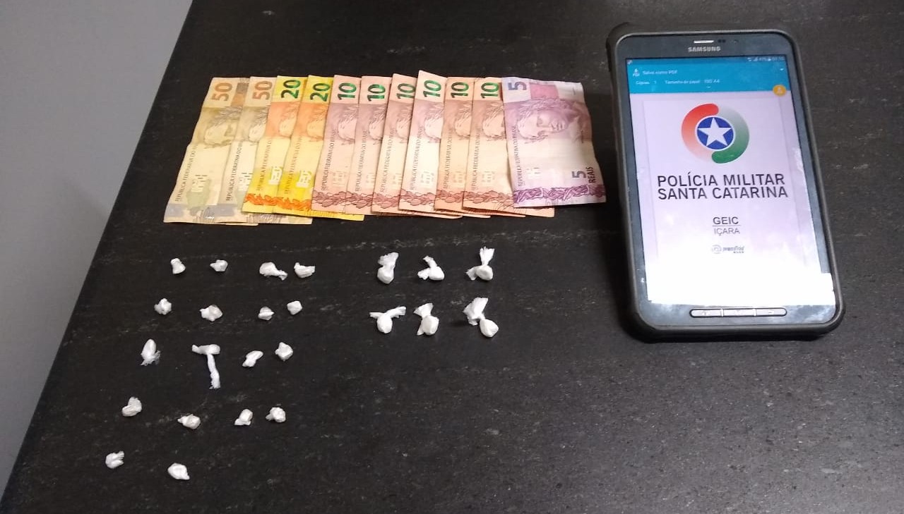 O Pelotão de Patrulhamento Tático de Içara apreendeu 18 pedras de crack e seis invólucros de cocaína no bairro Esplanada na noite desta sexta-feira, dia 7. A abordagem foi motivada por uma denúncia de ameaça com arma de fogo que acabou não confirmada, mas o movimento de pessoas e veículos chamou atenção em uma residência. Dois suspeitos correram para os fundos da propriedade, todavia, não conseguiram escapar. Um deles, identificado como traficante, de 22 anos, foi detido e encaminhado para a delegacia junto com o material apreendido.