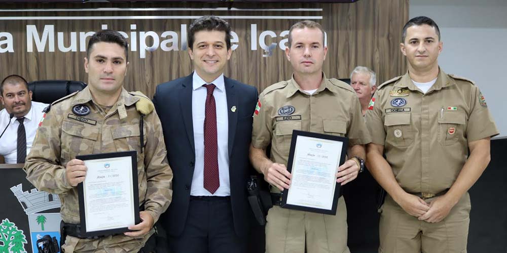 Diego Francisco Lima e Ézio Francisco Fernandes foram homenageados pela Câmara Municipal na noite desta segunda-feira, dia 10. Ambos participaram do socorro a vítima de um acidente automobilístico e identificaram um sequestro em andamento na Rodovia Mário Covas (BR-101). O sequestro ocorreu em Criciúma por dois homens armados, no último dia 5 de fevereiro, com a interrupção, em Içara, do crime após a capotagem do veículo roubado.