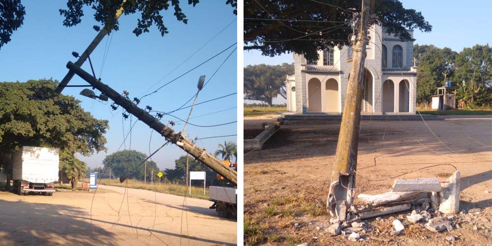 Poste de energia é atingido por caminhão na comunidade de Esperança