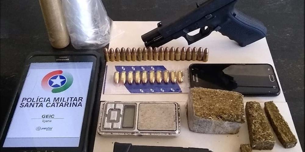 O setor de inteligência da Polícia Militar logrou êxito na abordagem de dois homens em Vila Nova no final da tarde desta sexta-feira, dia 8. Com eles foram apreendidos 160g de maconha, uma pistola Glock 9mm, além de munições de mesmo calibre e também 380. Conforme divulgado pela Guarnição Especial de Içara, a dupla - de 22 e 31 anos - traficava na comunidade. Esta foi a segunda apreensão de arma realizada pelo Pelotão de Patrulhamento Tático em dois dias.