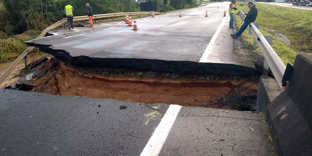 Em consequência do dano causado pela força da água com a enxurrada na noite desta sexta-feira, o desvio orientado pela PRF no sentido sul é pelo acesso no km 333 em sentido a Gravatal. Em direção ao norte, por vez, o acesso para o desvio é no km 369 por Morro da Fumaça. “Não podem passar caminhão cegonheira, bitrem e demais veículos de grande porte”, alerta. Os desvios valem somente para veículos leves, ônibus e, no máximo, carreta simples.