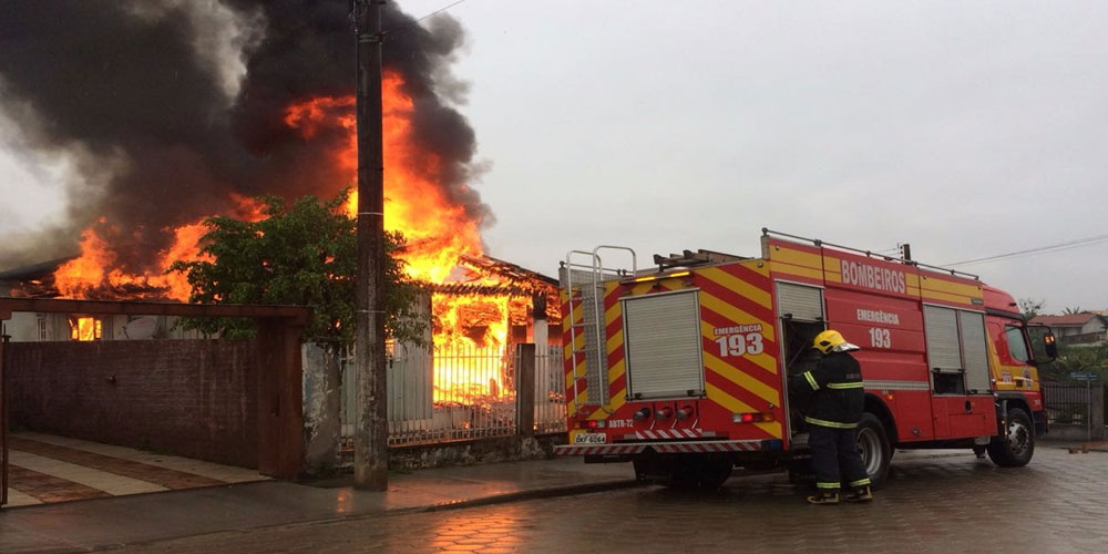 Uma casa de aproximadamente 120 metros quadrados foi destruída em um incêndio por volta das 14h deste sábado, dia 1. Além do caminhão do Corpo de Bombeiros de Içara, o atendimento da ocorrência no bairro Vila Nova contou com reforço devido ao risco para residências próximas. Foram utilizados aproximadamente 8 mil litros de água para o controle das chamas, o rescaldo da estrutura mista na Rua Pedro Guglielmi e a prevenção no entorno. Após o trabalho o local foi deixado aos cuidados do inquilino.
