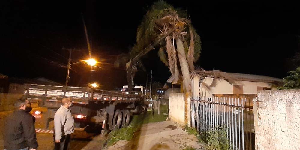 Conforme verificado pelo Corpo de Bombeiros, 70% da base da árvore estava podre, o que facilitou a queda com a força do vento. A Defesa Civil foi acionada para a retirada do coqueiro com um guindaste e houve ainda a cobertura da casa com lona. No momento da queda havia somente uma pessoa no interior da casa. O morador não teve lesões.