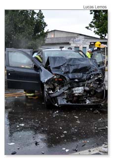 11/05/2010 - Um acidente entre um Versailles de Criciúma e um Pálio de Içara mobilizou o Corpo de Bombeiros, Samu e Polícia Militar Rodoviária na manhã desta terça-feira, dia 11. Por volta das 7h, os dois veículos colidiram frontalmente no trecho próximo ao redutor de velocidade da SC-444 no bairro Presidente Vargas. E provocaram...