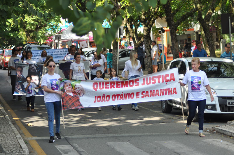 As sirenes ecoaram no centro de Içara junto com a fanfarra da Escola Municipal Quintino Rizzieri na manhã deste sábado, dia 13. Mas não foi para uma emergência. A principal rua comercial de Içara foi fechada momentaneamente por pedestres, forças de segurança e autoescolas para chamar atenção ao trânsito, neste ano, com a mobilização do Maio Amarelo destinada a diferença de pequenas atitudes no cotidiano, por exemplo, uso do celular e de álcool. "É o meu segundo dia das mães sem meu filho. A bebida foi determinante. O motorista que causou o acidente foi detido, pagou fiança e está solto. Mas a minha dor continua", coloca a mãe de João Otávio, Rosimeri Zilli Levandovski.
