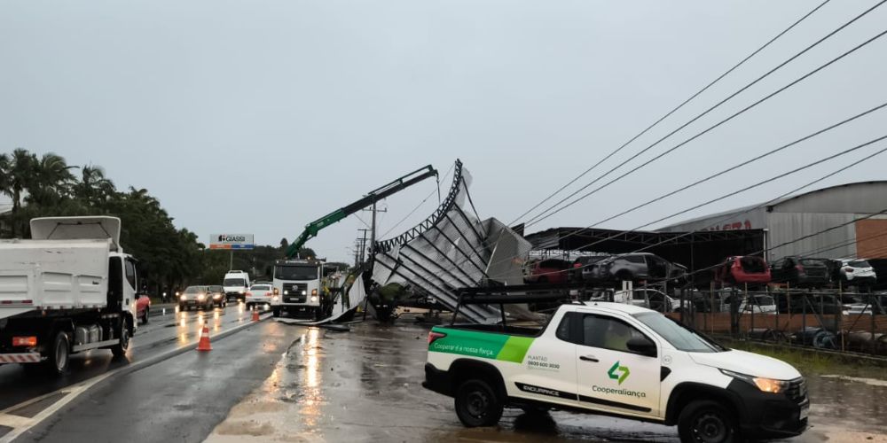Temporal derruba estrutura metálica, provoca granizo e queda brusca de temperatura em Içara