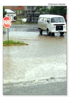 Bastou chover por quase uma hora nesta quarta-feira, dia 27, para que ficasse alagado o trevo da SC-444 próximo da Polícia Militar Rodoviária, no Liri. Conforme a moradora Dhenyse Maciel, o problema existe há muito tempo pela falta de um sistema eficaz de drenagem. Quando chove, os comerciantes às margens da rodovia já ficam tensos, com medo de que a poça chegue até as empresas.