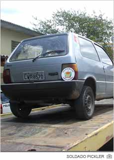 Um Fiat Uno furtado de Nova Veneza foi encontrado em Içara por volta das 13h10 desta segunda-feira, dia 19. O veículo estava em um matagal na ICR-150, no bairro Nossa Senhora de Fátima, quando uma viatura da Polícia Militar passou pelo local e reparou no abandono do carro. Conforme o sargento Alexandre Fontoura, o veículo com registro de furto realizado no dia anterior foi achado sem os bancos e também sem uma parte do aparelho de CD. O automóvel acabou guinchado à Delegacia da Polícia Civil.