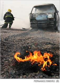 Cerca de 300 litros de água foram necessários para cessar o fogo que destruiu uma van de Içara carregada com ovos. O veículo estava estacionado numa lanchonete na Rodovia Luiz Rosso, em Criciúma, quando por volta das 16h iniciou o incêndio. Conforme o sargento Alves, do Corpo de Bombeiros, após observadas as chamas, o automóvel ainda chegou a ser empurrado por quase quatro metros para evitar que o estabelecimento comercial fosse atingido.