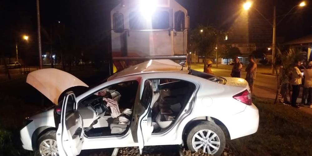 Um Honda Civic de Blumenau foi atingido pelo trem ao passar pela linha férrea no momento em que se aproximava a composição e acabou arrastado por quase 50m na madrugada desta quarta-feira, dia 3. O motorista, de 43 anos, não teve lesões. Já a caroneira, de 28, ficou presa às ferragens e precisou do auxílio do Corpo de Bombeiros para o desencarceramento. O Serviço de Atendimento Móvel de Urgência também foi acionado para o deslocamento da mulher ao hospital.