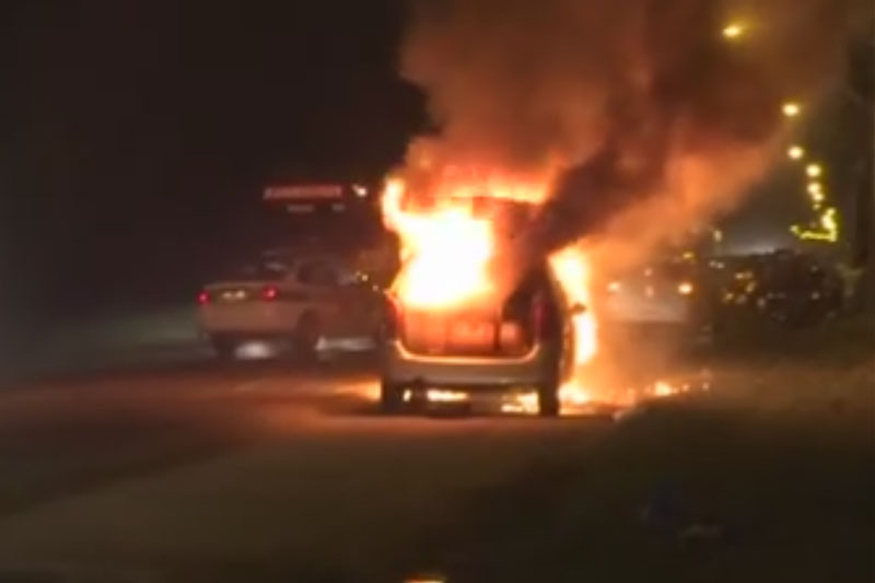 Veiculo é tomado pelo fogo na SC-445