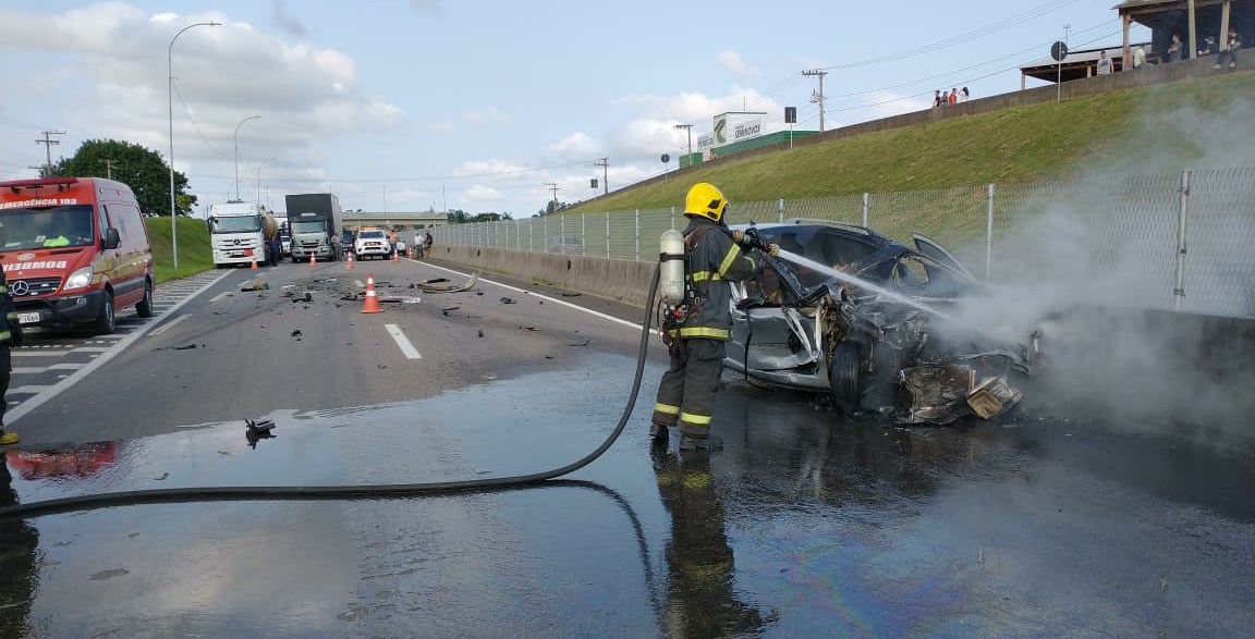 Um Peugeot 307 acabou parcialmente incendiado em um acidente na Rodovia Mário Covas (BR-101) na tarde deste sábado, dia 14. O veículo colidiu na traseira de caminhão por volta das 16h25 no trecho de Esplanada, em Içara, e aproximadamente 1 mil litros de água precisaram ser utilizados pelo Corpo de Bombeiros de Morro da Fumaça para controlar as chamas na parte frontal do automóvel. Após o combate foi realizada ainda a limpeza da pista, pois houve derramamento de óleo. Conforme divulgado pela corporação, o motorista foi encontrado já fora do carro e recebeu atendimento da concessionária da rodovia federal. O acidente teve o envolvimento também de um Land Rover.