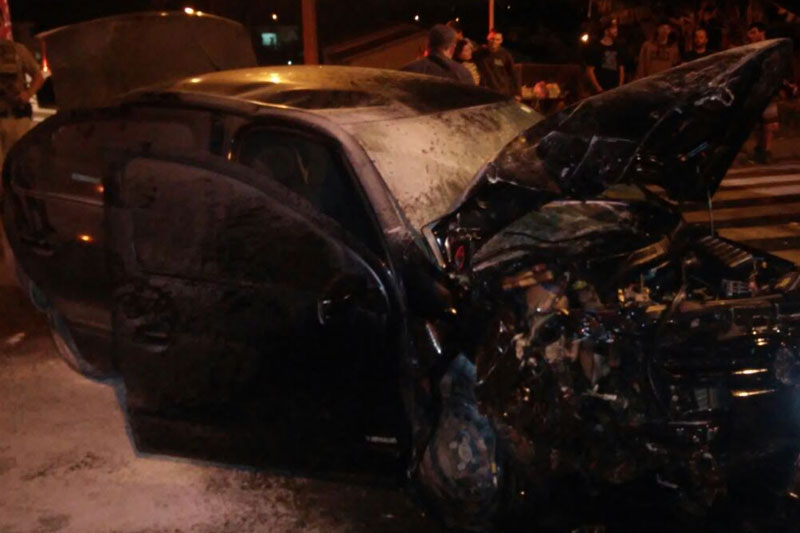 O Corpo de Bombeiros deslocou duas viaturas até a Avenida Dilcio Esmael da Silva por volta das 20h50 desta quarta-feira, dia 28. O caminhão bomba-tanque atendeu o incêndio de um Voyage. Já a ambulância prestou socorro ao motorista retirado pela comunidade do automóvel. O condutor, de 49 anos, sofreu um corte na cabeça em consequência da colisão contra uma padaria e teve encaminhamento ao Hospital São Donato.