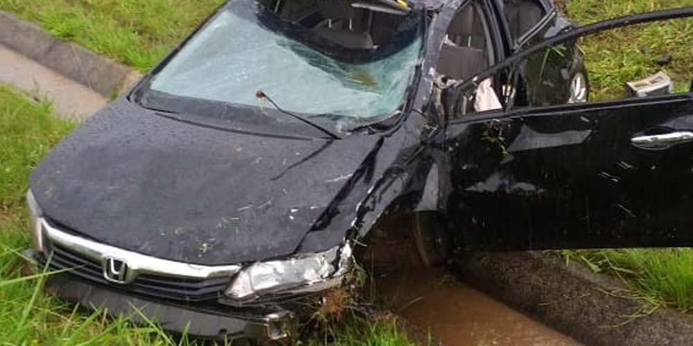 Um Honda Civic de São Paulo tombou no canteiro central da Rodovia Mário Cóvas (BR-101) na comunidade de Poço Oito por volta das 15h45 desta sexta-feira, dia 21. Segundo o relato do motorista, de 37 anos, o veículo aquaplanou na pista em direção ao Norte, em consequência disso ocorreu a saída da rodovia e ainda a capotagem. O condutor teve ferimento na cabeça. E dentre os quatro ocupantes, o Corpo de Bombeiros de Içara atendeu também dois passageiros devido a dor causada pelo impacto.
