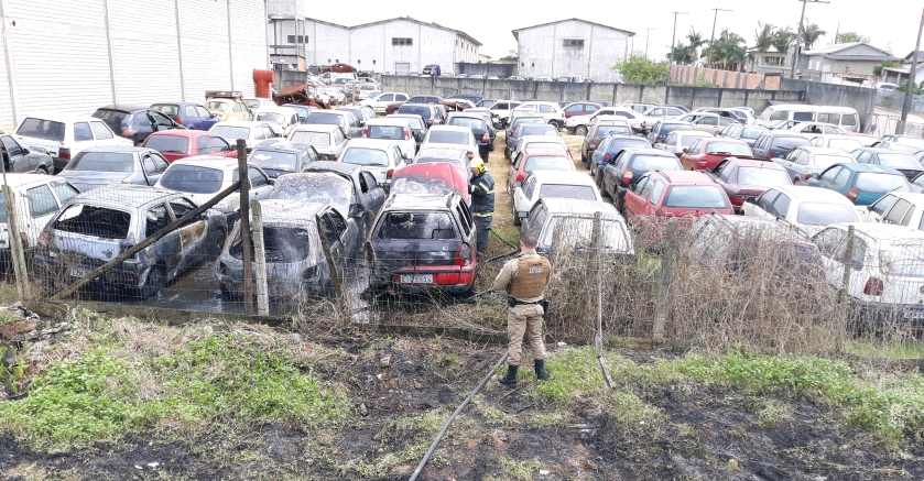 Veículos são atingidos por incêndio em pátio no bairro Jardim América