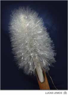 A dica de Sérgio Shiro é que se tome o cuidado de garantir que a árvore fique no formato de cone. Nas peças realizadas por ele, outro preparativo que faz é realizar furos no cano PVC. Estes orifícios servem de escapatória para a luz instalada no interior da peça. Com isso, a árvore vira luminária.