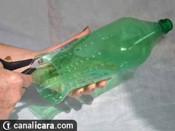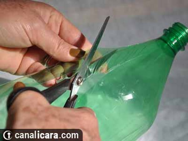 - Em seguida, fure o bico das garrafas, junte as unidades e amontoe-as no entorno, por exemplo, de um cano PVC;
